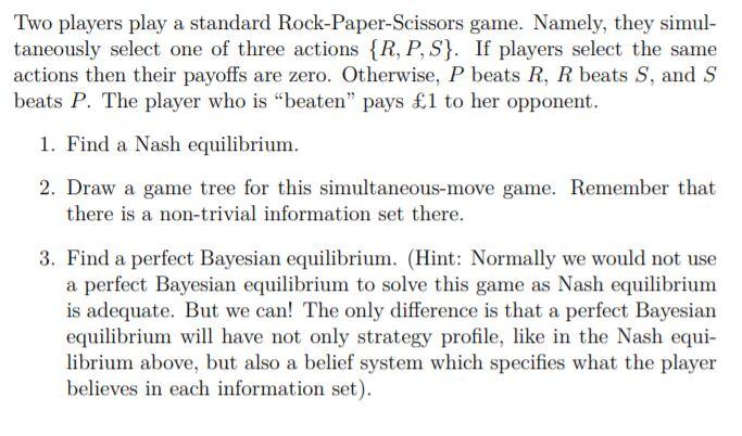 Solved Two Players Play A Standard Rock Paper Scissors Game Chegg Com